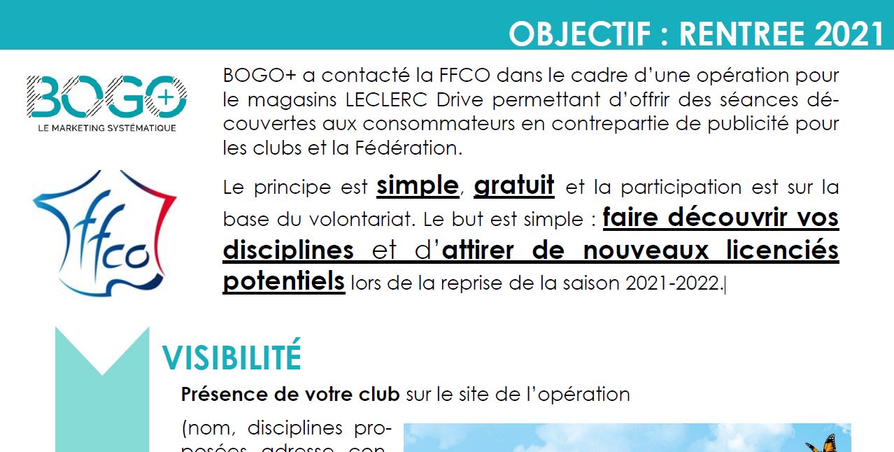 BOGO+ a contacté la FFCO dans le cadre d’une opération pour les magasins LECLERC Drive permettant d’offrir des séances découvertes aux consommateurs en contrepartie de publicité pour les clubs et […]