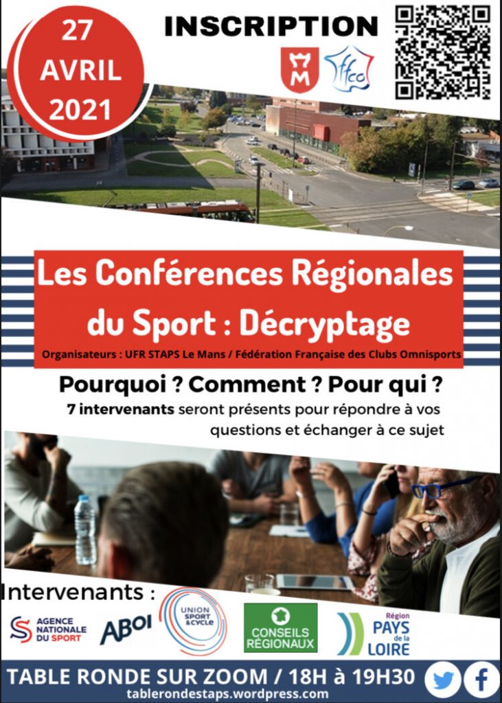La F.F. Clubs Omnisports coorganise, avec les étudiants STAPS de l’Université du Mans, une table ronde dédiée au décryptage des conférences régionales. L’objectif est de débattre du rôle de ces conférences, partager les expériences de la mise en place, observer les intérêts des clubs, du monde économique, du monde sportif, de participer à ces conférences régionales du sport.